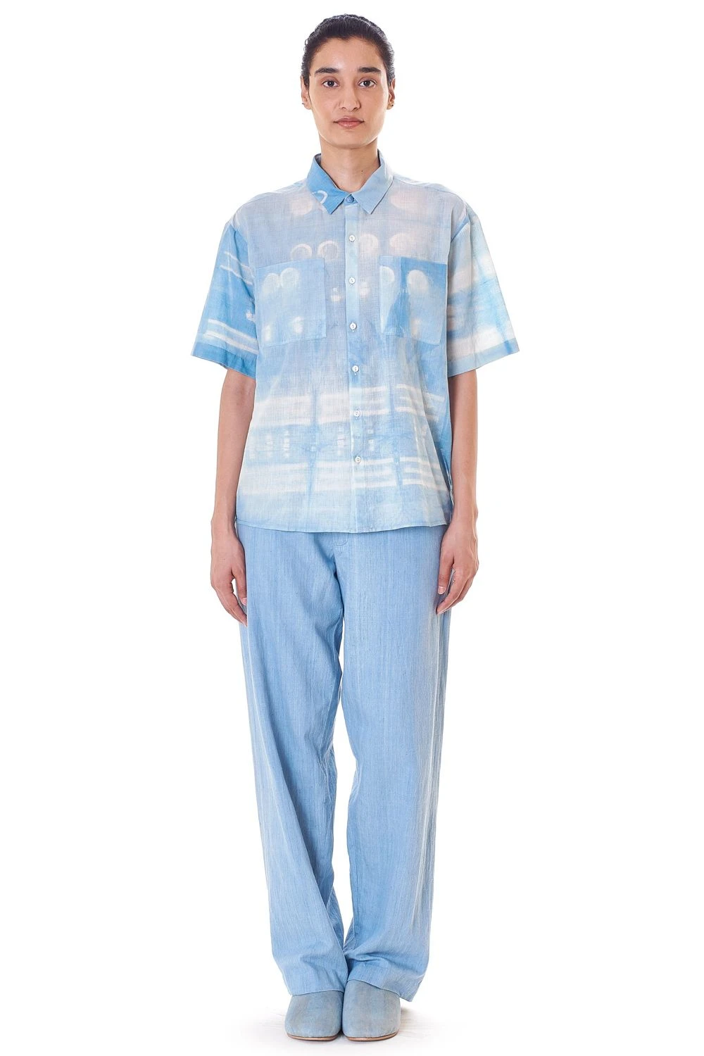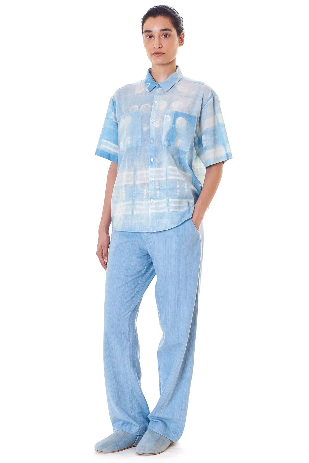 Amp up your summer closet with light-weight & breathable pieces that keep you fresh throughout the day. This unisex half-sleeved shirt will do trick. It is made in fine handspun cotton and clamp dyed in natural indigo.