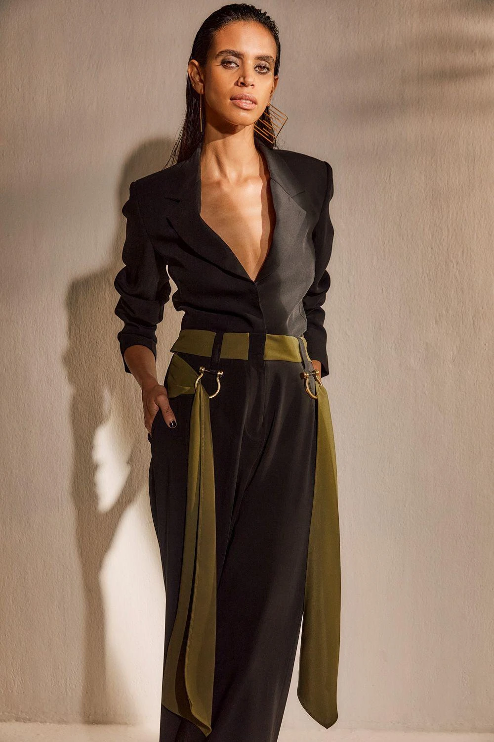 For an everyday elevated look, these black straight pants are made in a crush free fabric and features a stitched on belt detail. Wear these pants with a simple tee or shirt for a relaxed look.