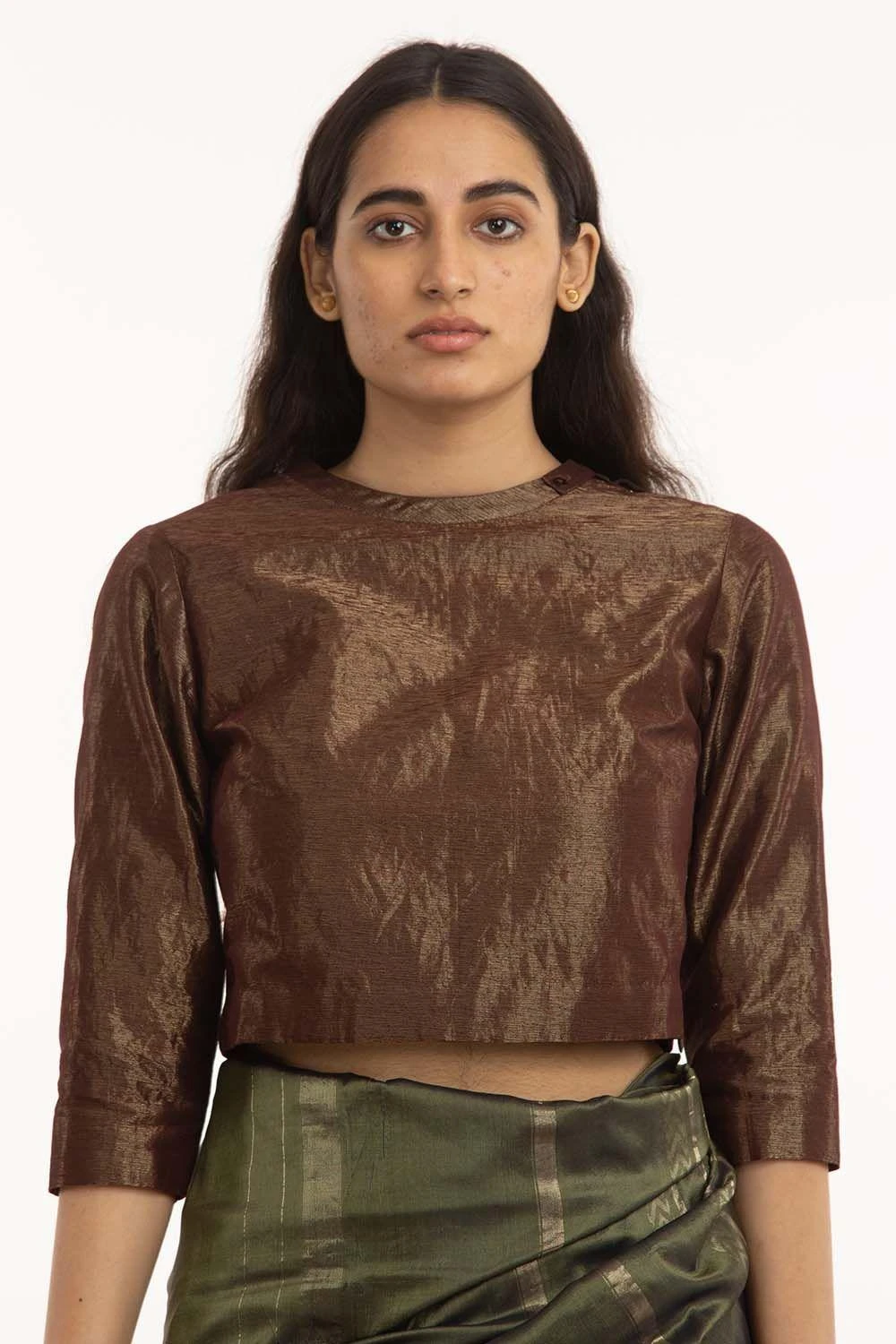 Akaaro Red Shameem Collared Back Yoke Blouse