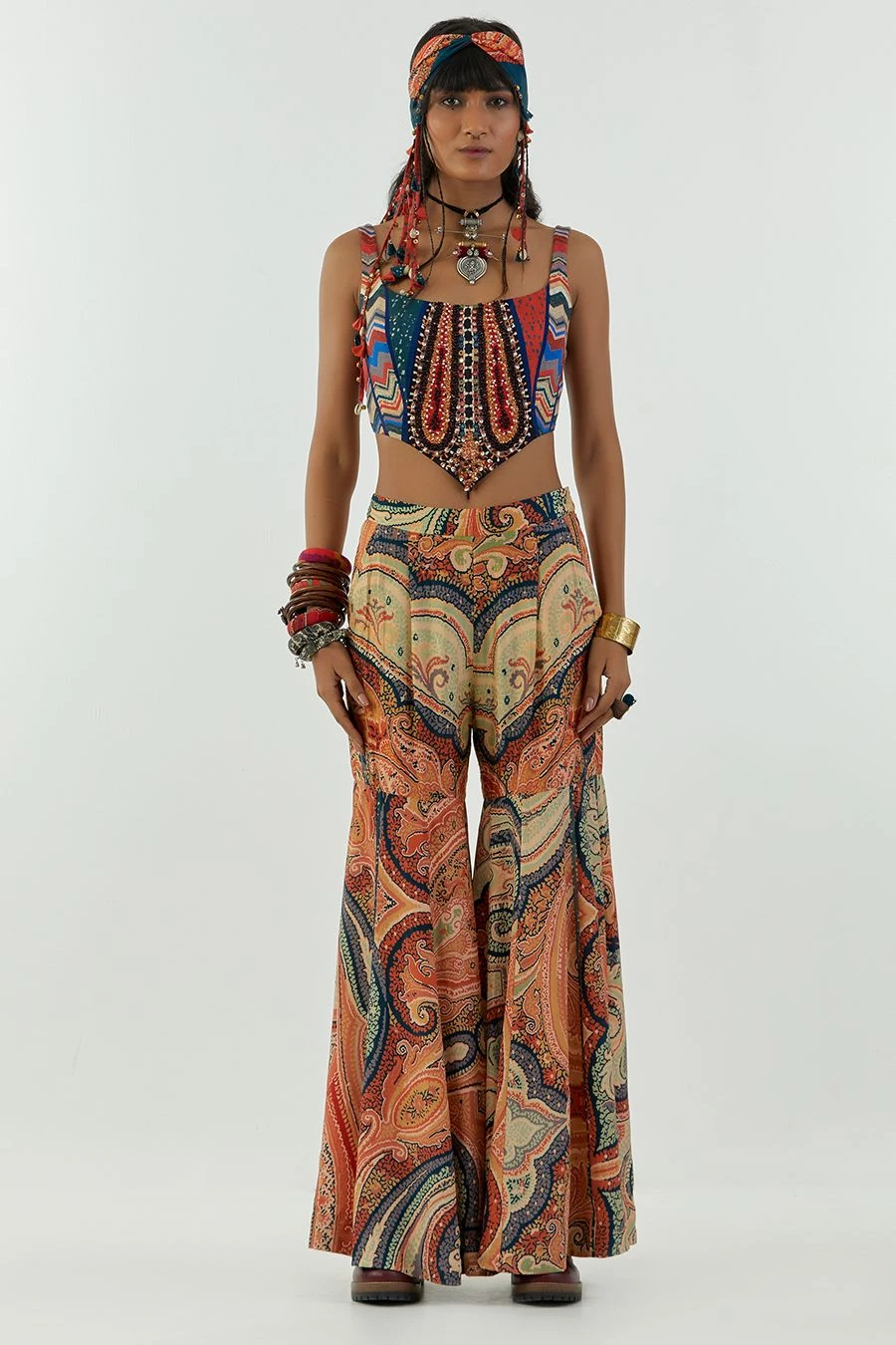 Maximise the life of your wardrobe with this exquisite corset blouse. Crafted in cotton silk, this embroidered blouse features beadwork detailing and tie up details at back.