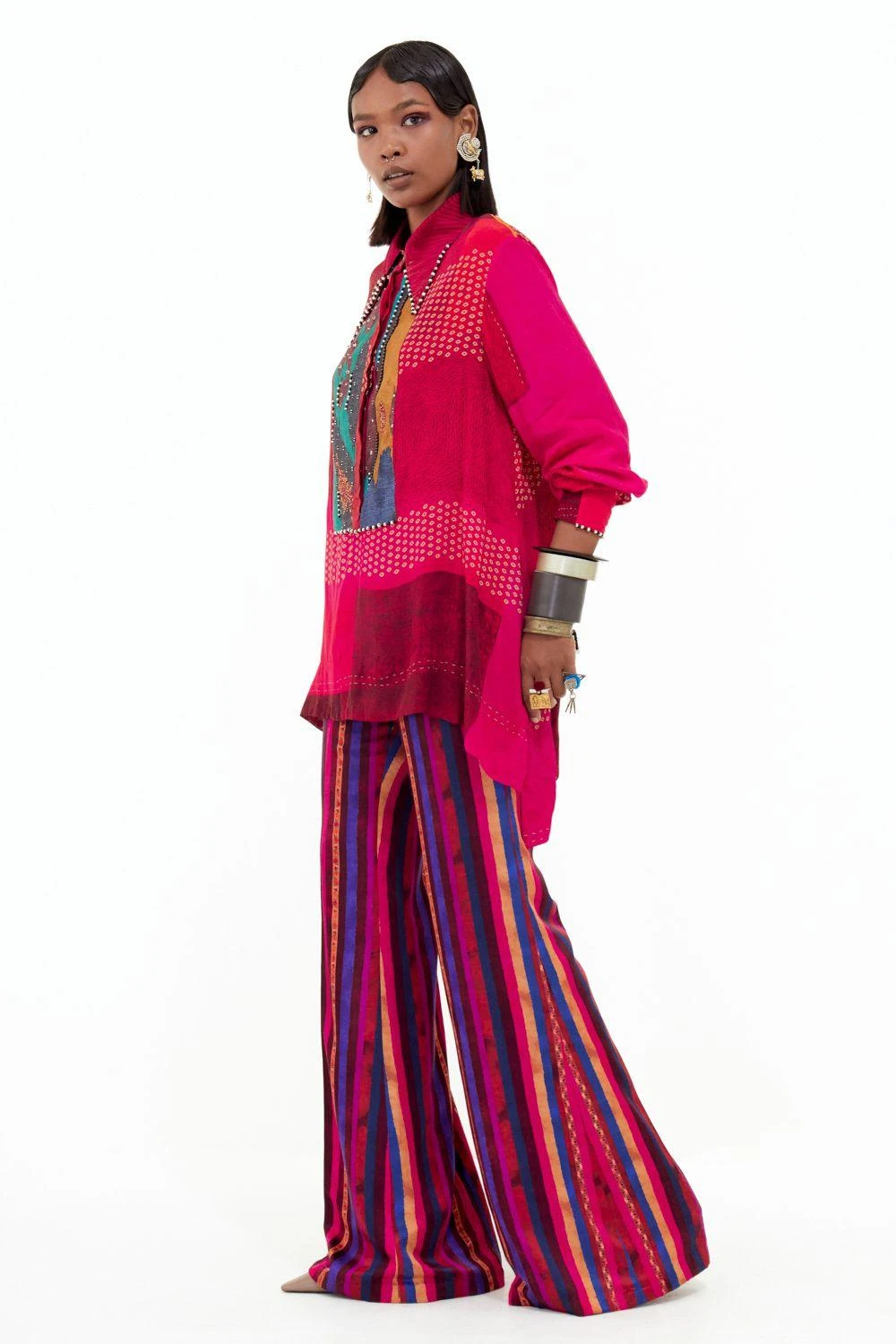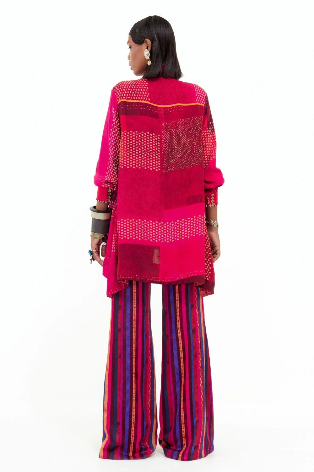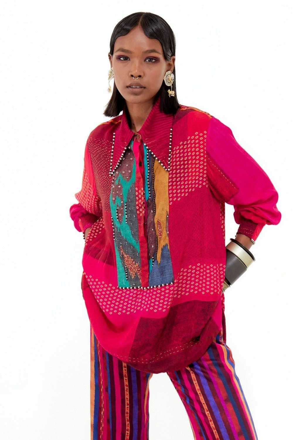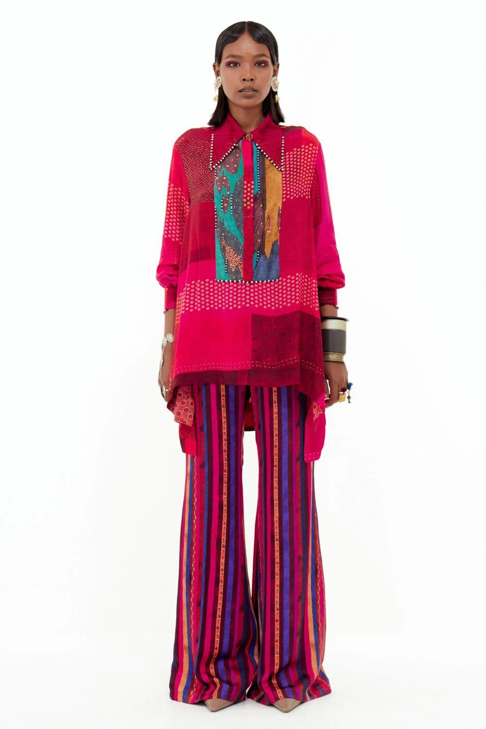 Maximise the life of your wardrobe with this exquisite shirt. Crafted in Italian crepe, this embroidered collared shirt features an abstract print. Pair it with printed trousers from the collection to complete the set.