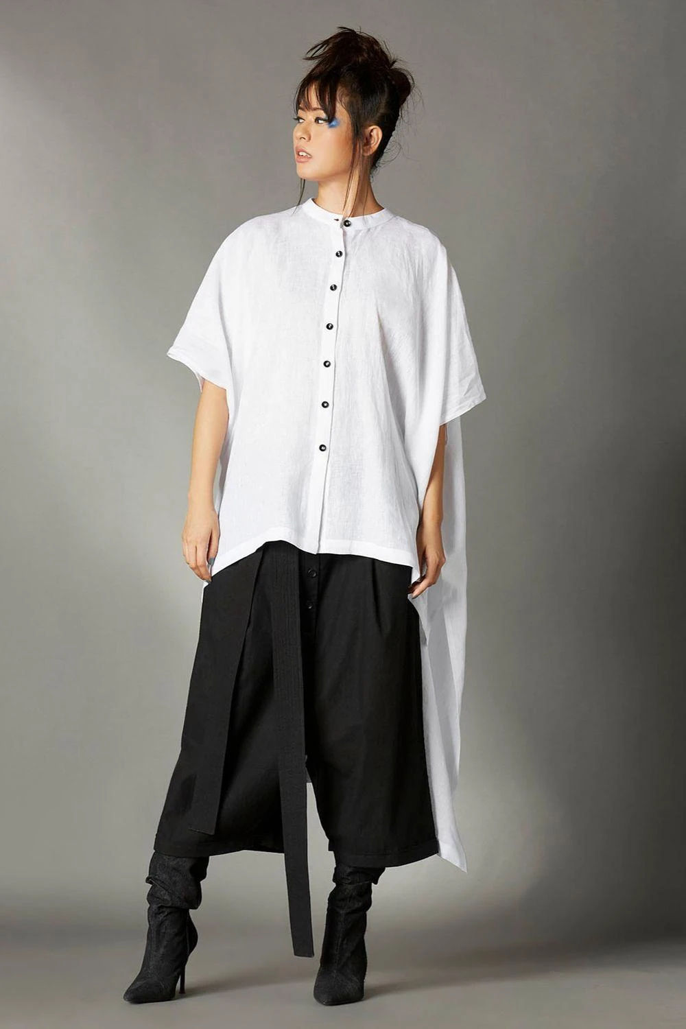 Elevate your fashion game with these low-crotch narrow trousers. Featuring a long button placket, cross pockets, and a stylish belt for a unique look.