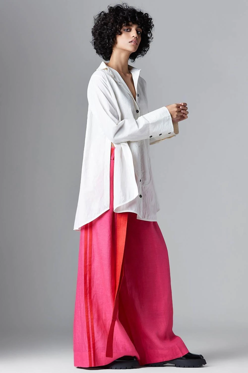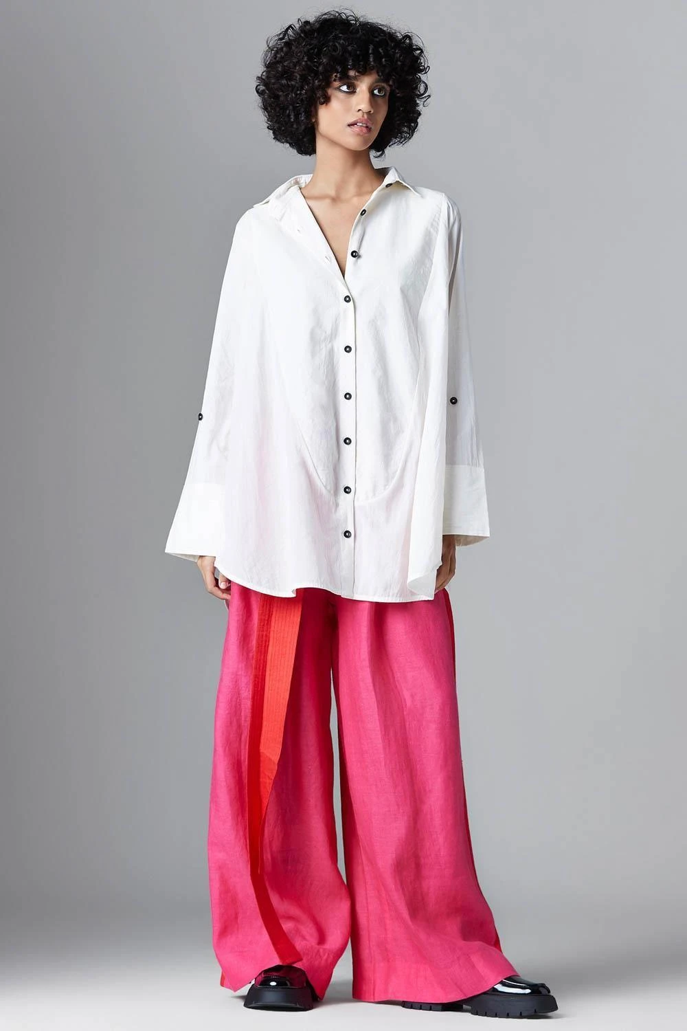 Crafted in organic cotton, this shirt features straight full sleeves, a curved yoke flap and tie-up detail at the back. Style them with pink trousers from the collection to complete the set.