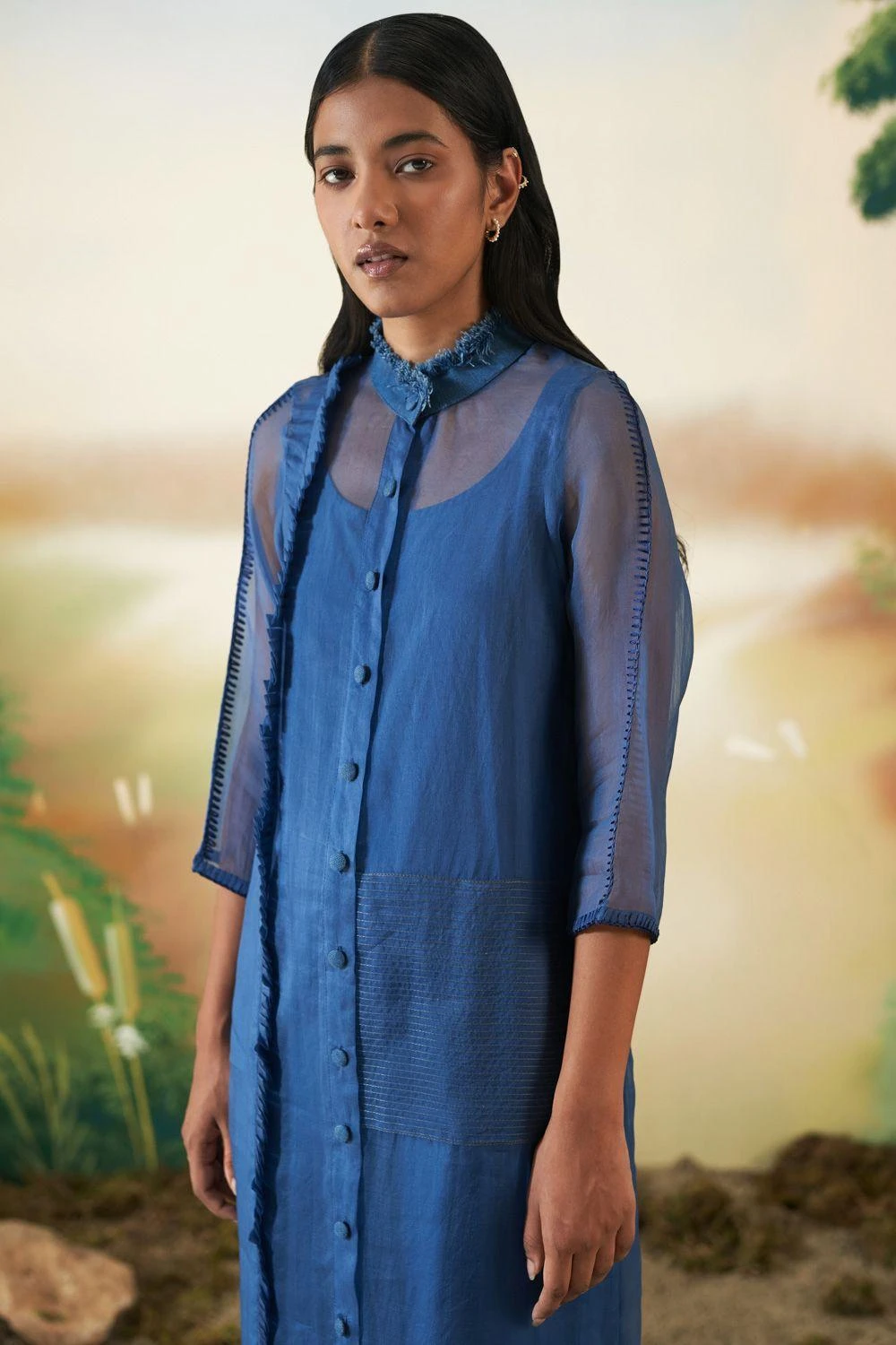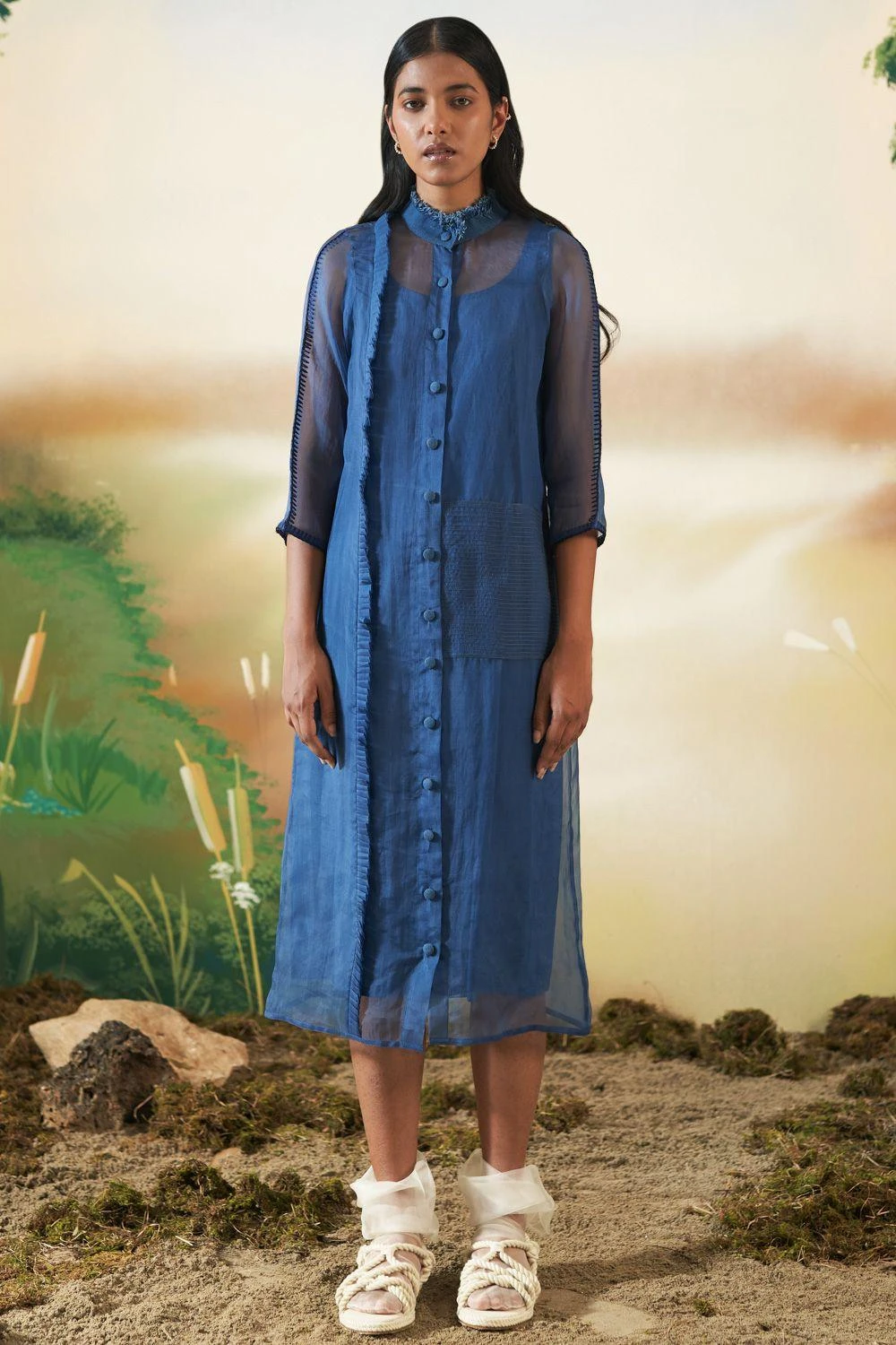 From your work desk to the brunch table & from lounging at home to catching flights, you can always count on this dress. Crafted in silk organza, this set features a pleated hand embellished sheer dress paired with a coordinating camisole.