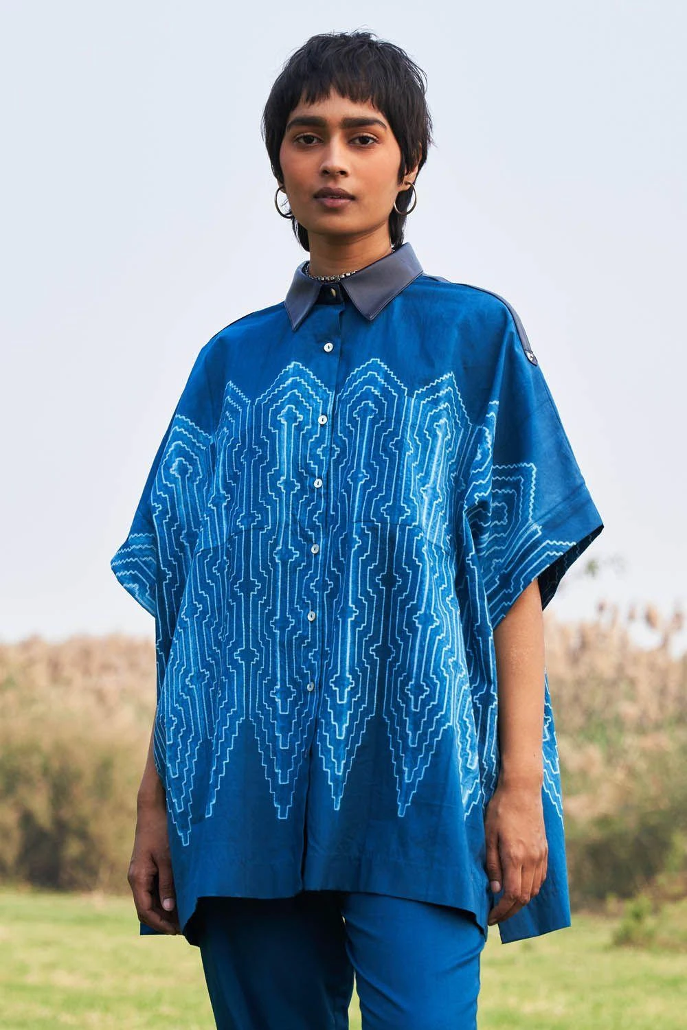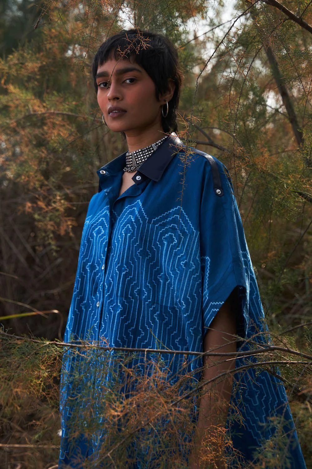 Ikai Slate Shibori Dyed Kaftan Shirt