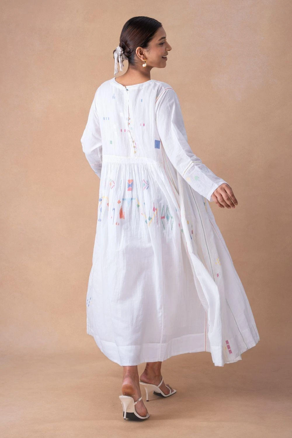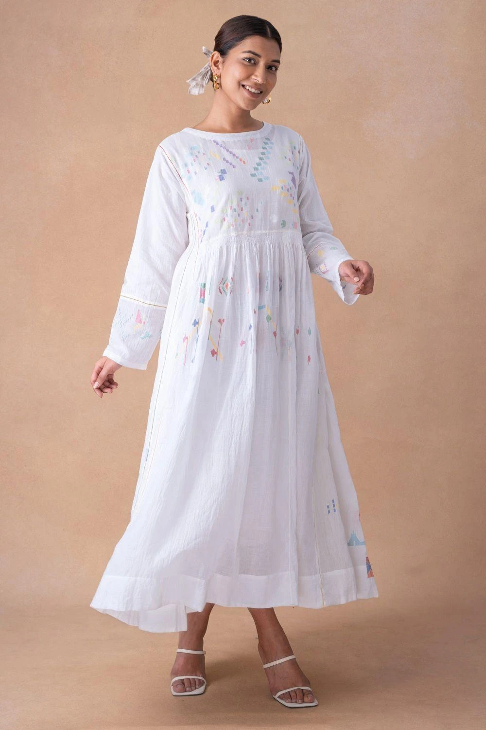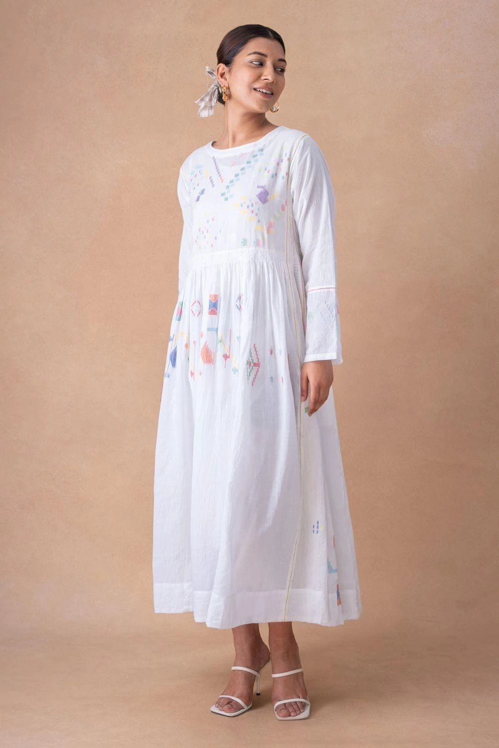 Indulge in pristine elegance with the White Motif Adorned Cotton Dress, accompanied by a chic slip. Each wear narrates a tale of refined allureùa poetic chapter in your journey of timeless sophistication.