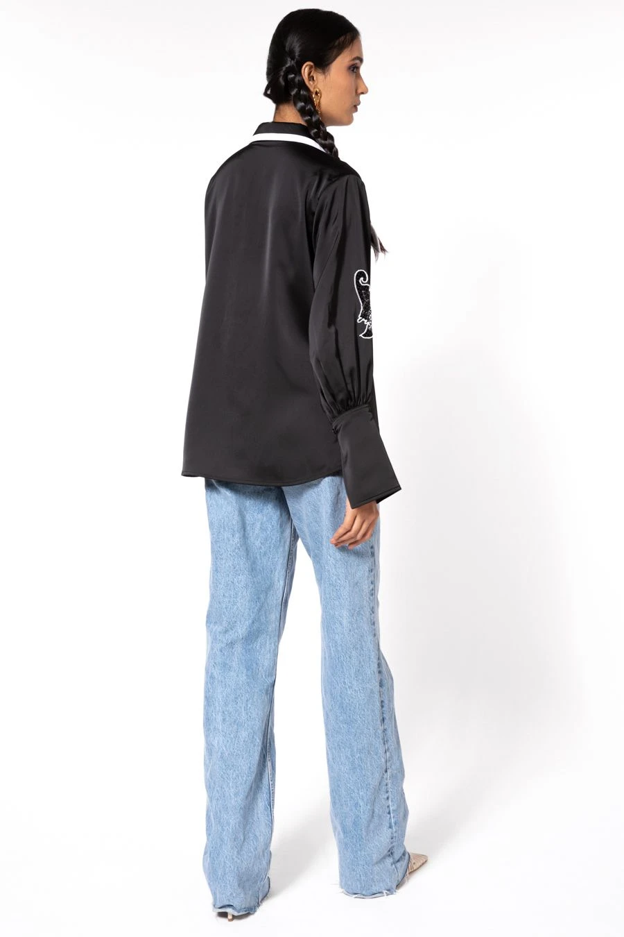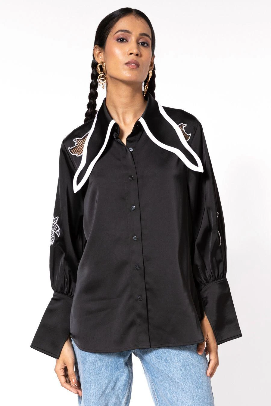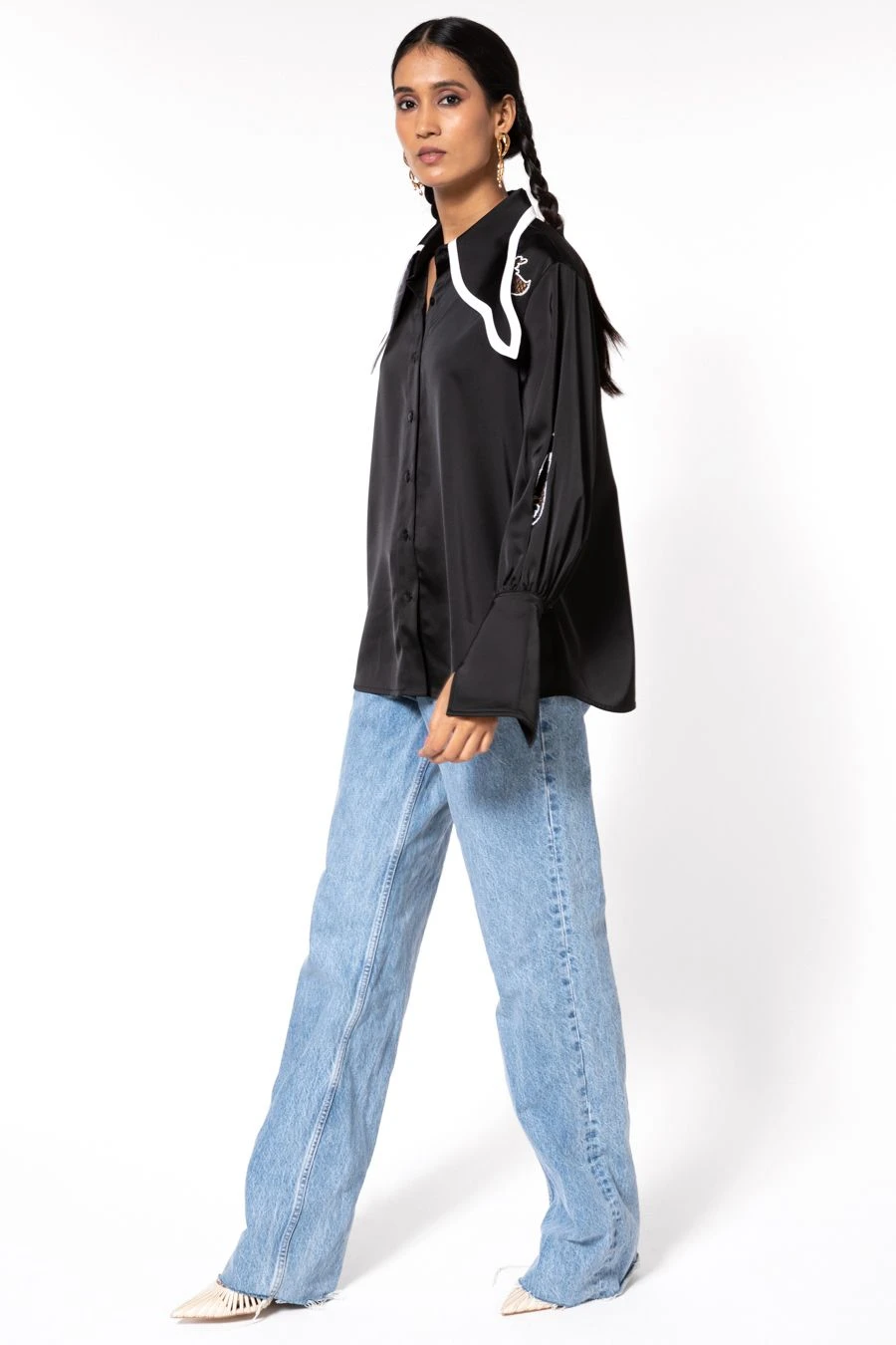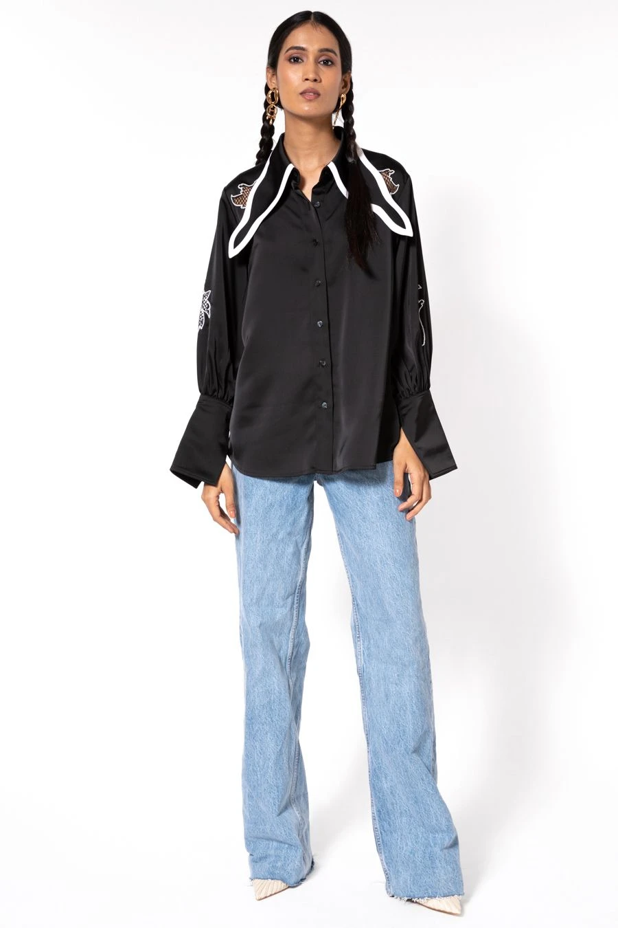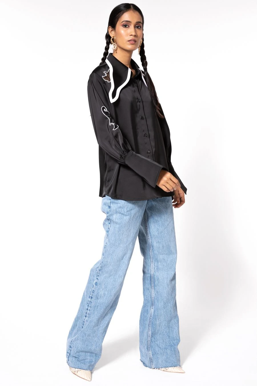 From your work desk to the brunch table & from lounging at home to catching flights, you can always count on this shirt. This shirt features abstract embroidery with an oversized collar. Style it with a pair of denims to complete the set.