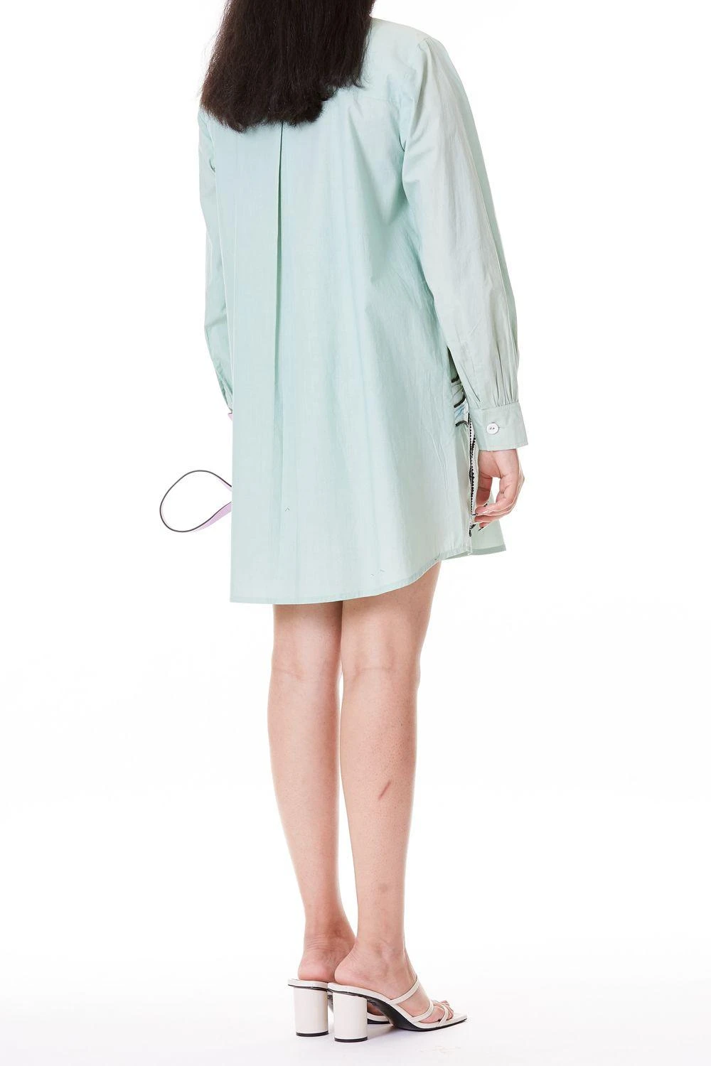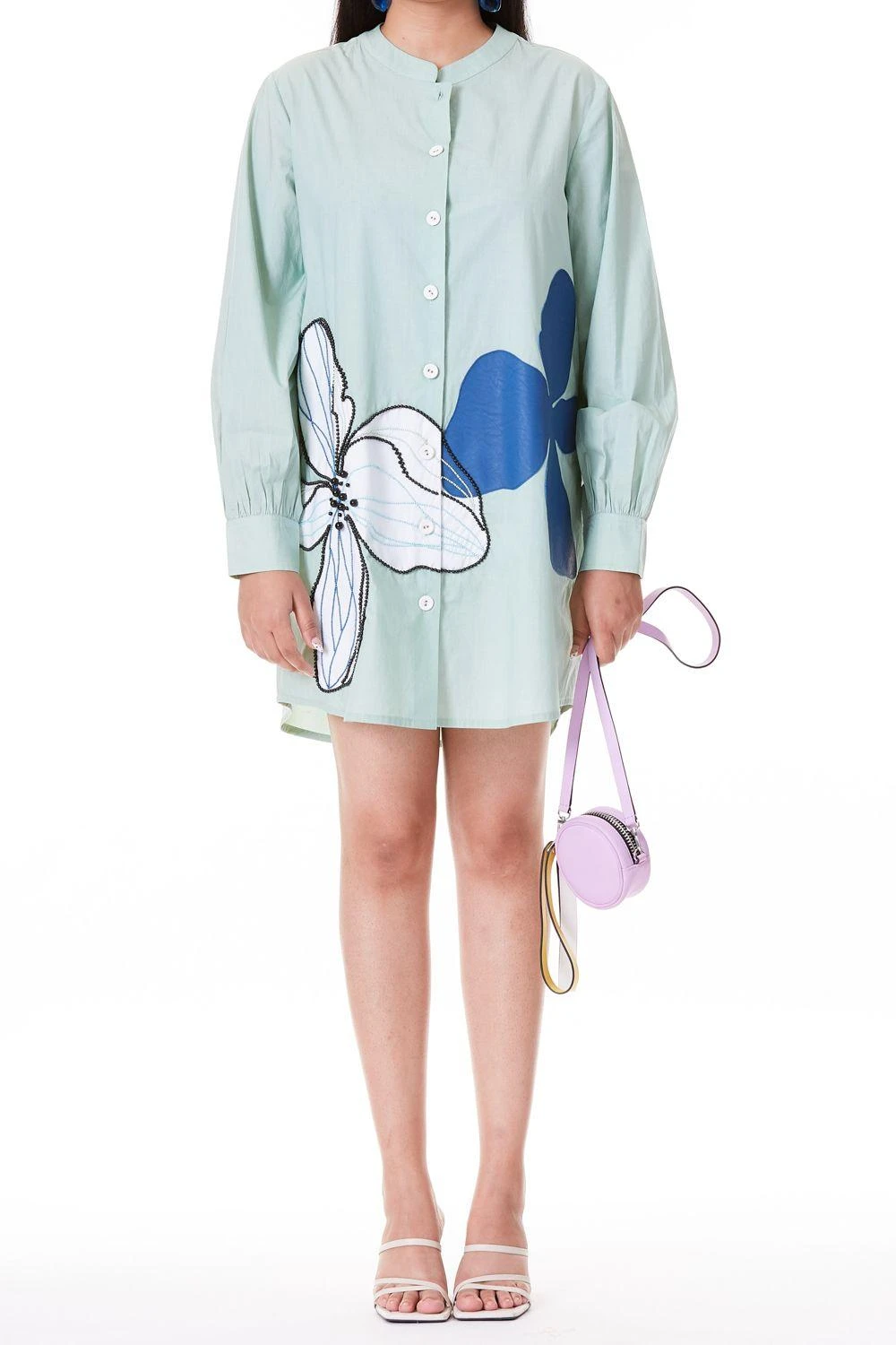 This cyan green top stitched shirt offers style & comfort, both in abundance. It is cut in cotton and uplifted with hand beaded floral faux leather applique details. You can style it solo or team it up with a pair of boyfriend denims.