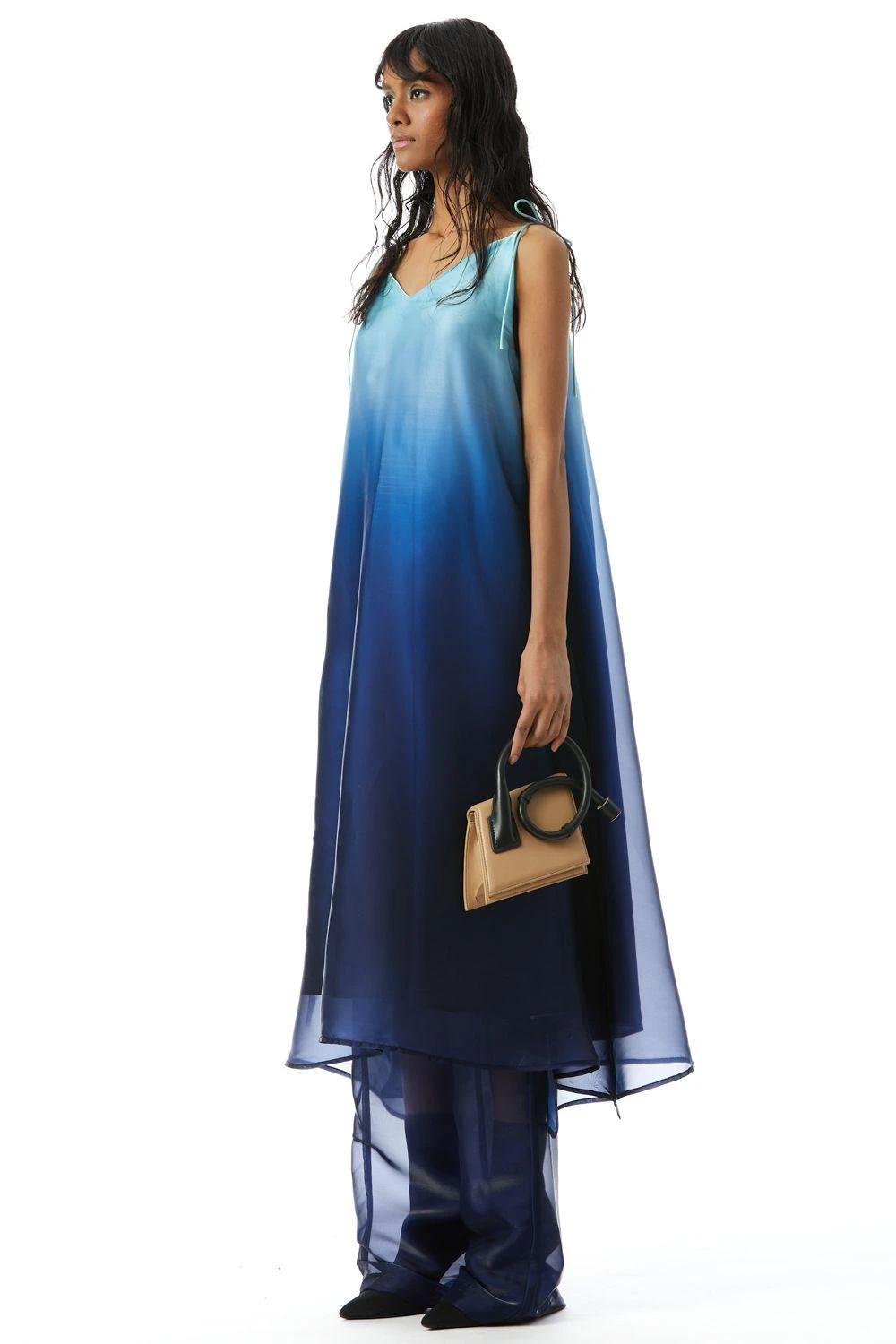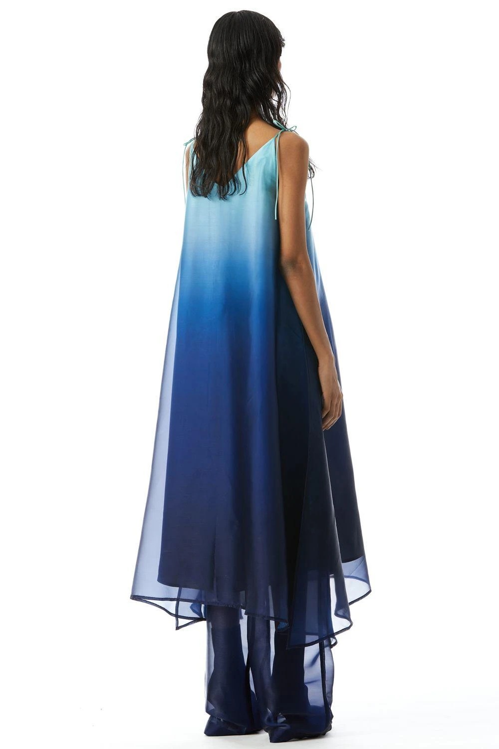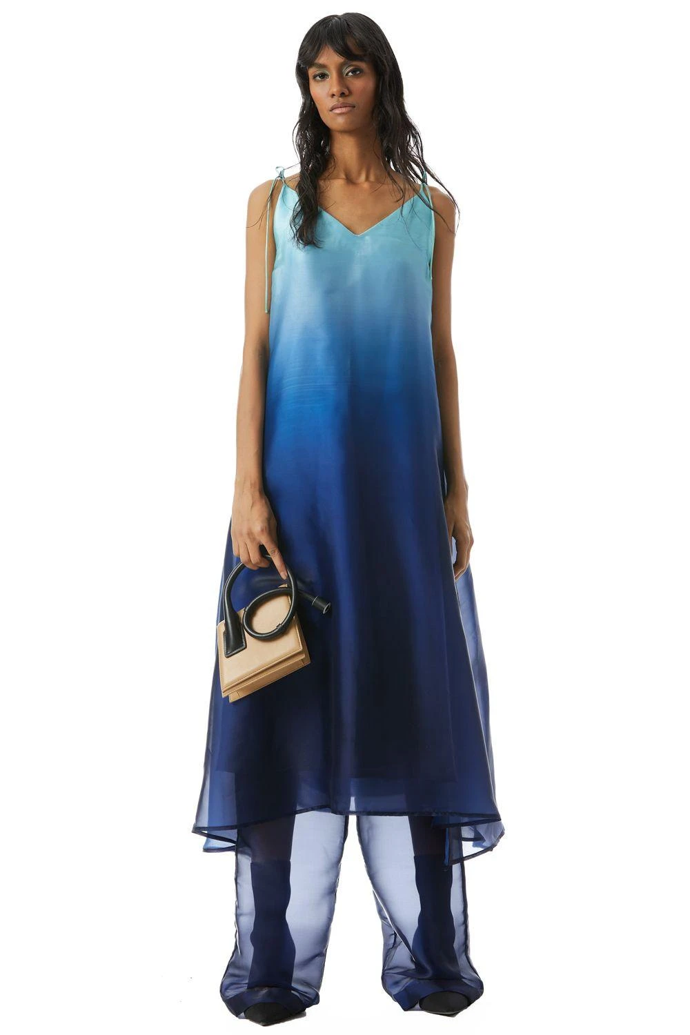 Indulge in the mesmerizing beauty of this blue ombre midi dress. The gradient colour transition creates a captivating visual effect, while the midi length adds a touch of sophistication.