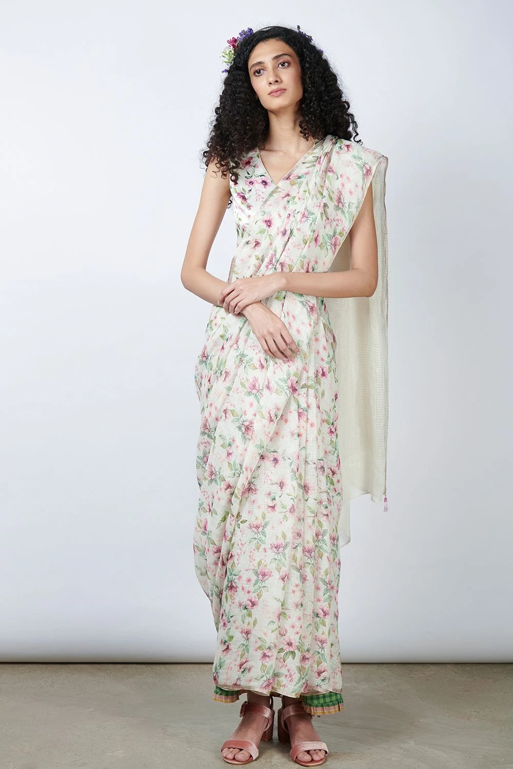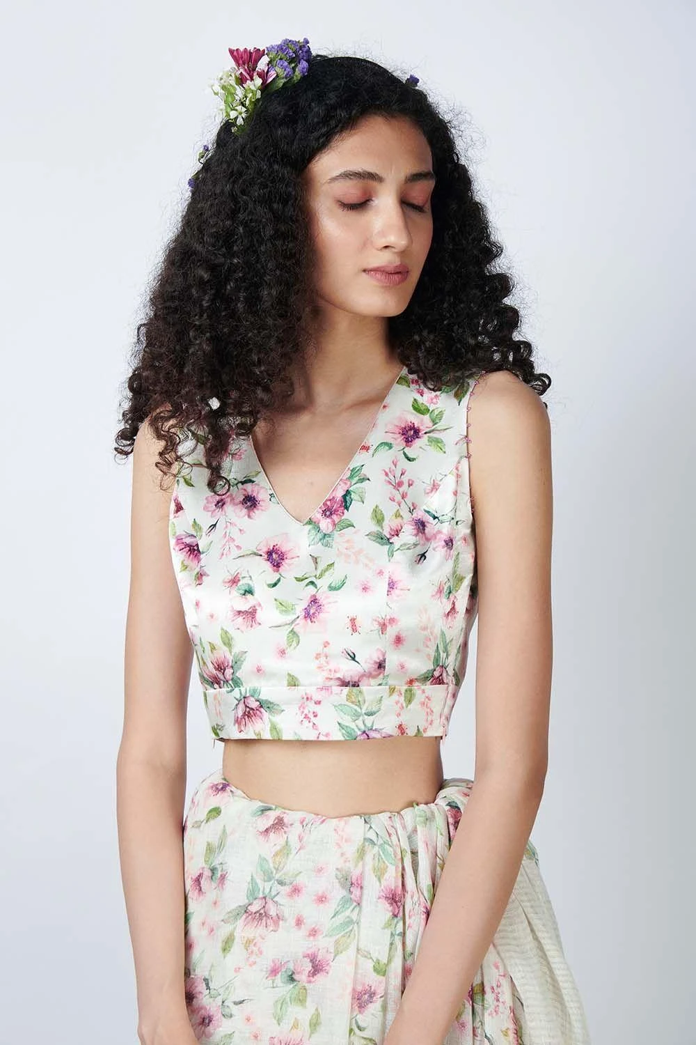 Nadiya Paar Floral Blouse With Bead Detailing