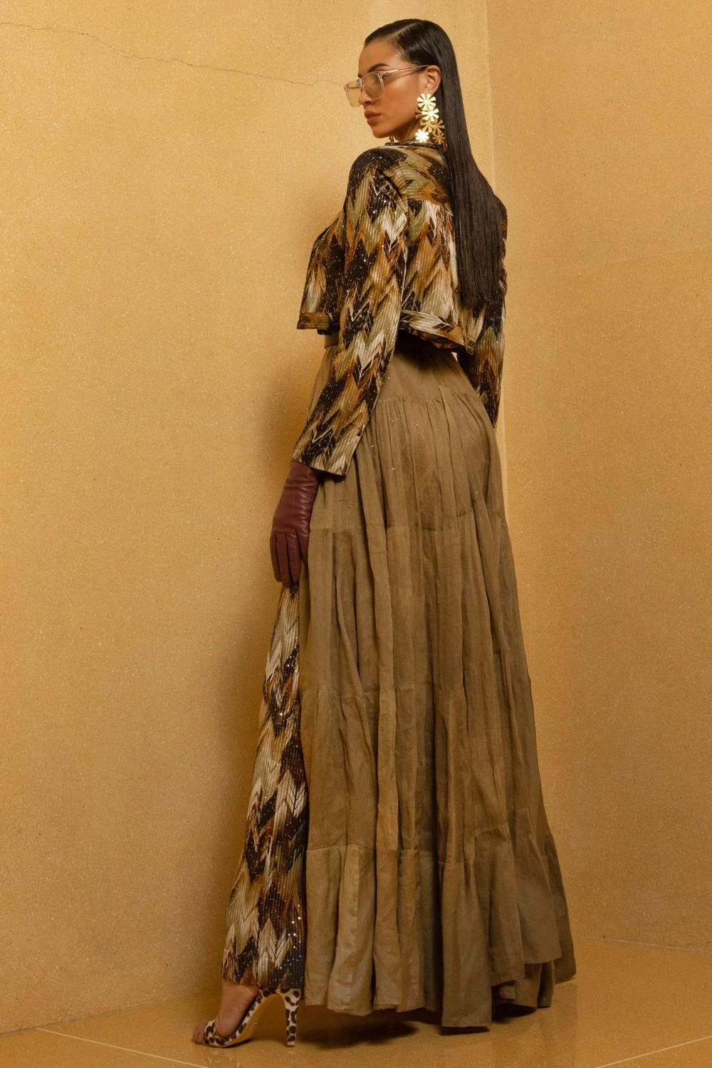 Make a style statement in these glitzy brown printed pants. These are engineered in sheeted pure georgette in a straight fit silhouette. You can team it up with a coordinating jacket for an evening soiree.