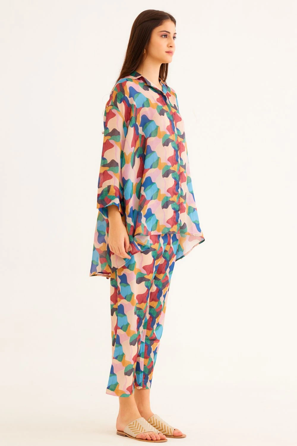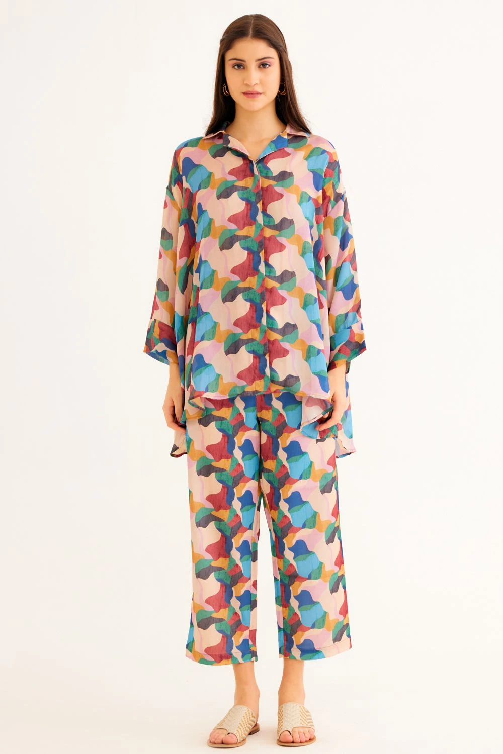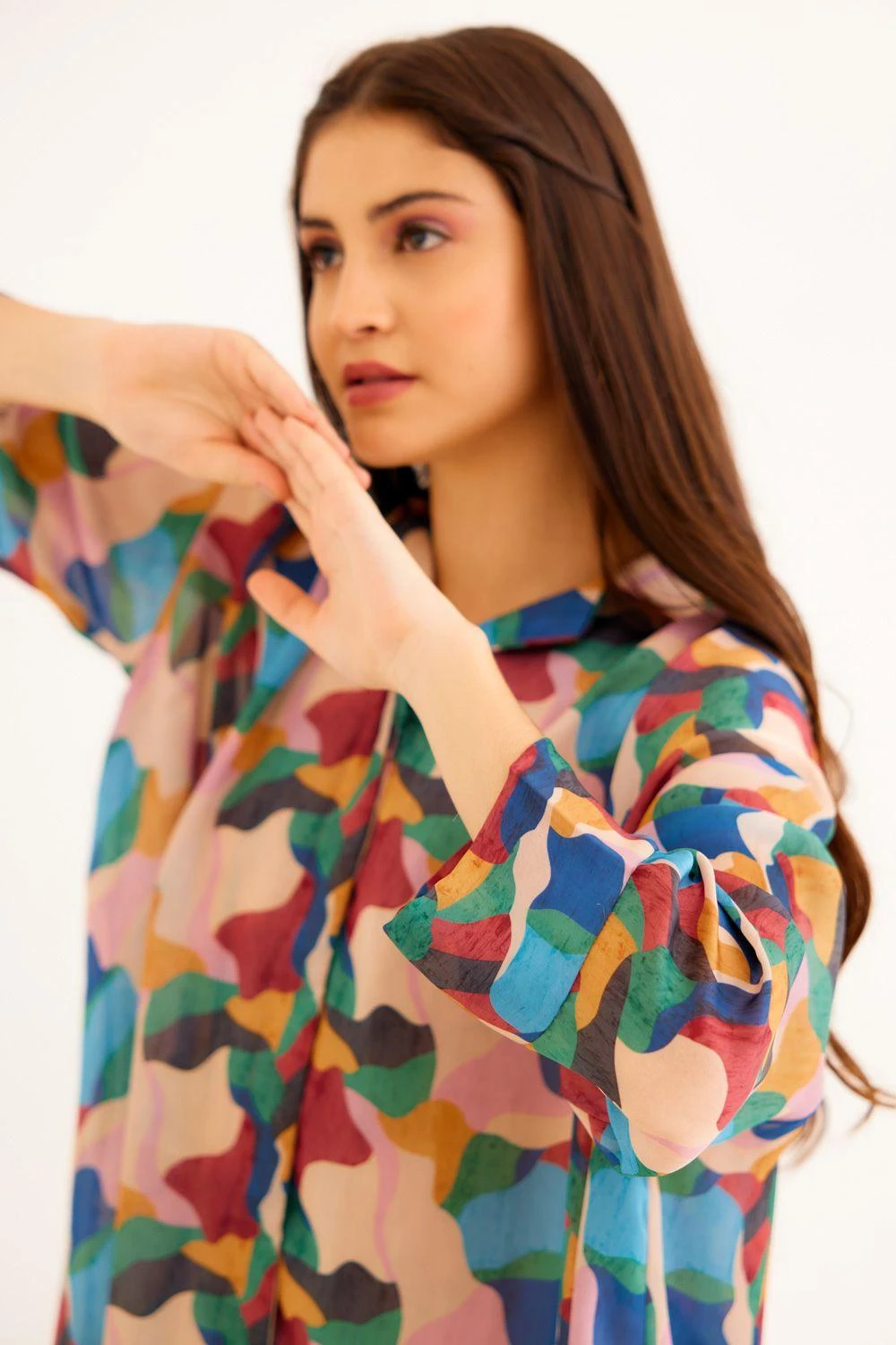 From your work desk to the brunch table & from lounging at home to catching flights, you can always count on this top. Crafted in satin georgette, this top features an abstract print all over.