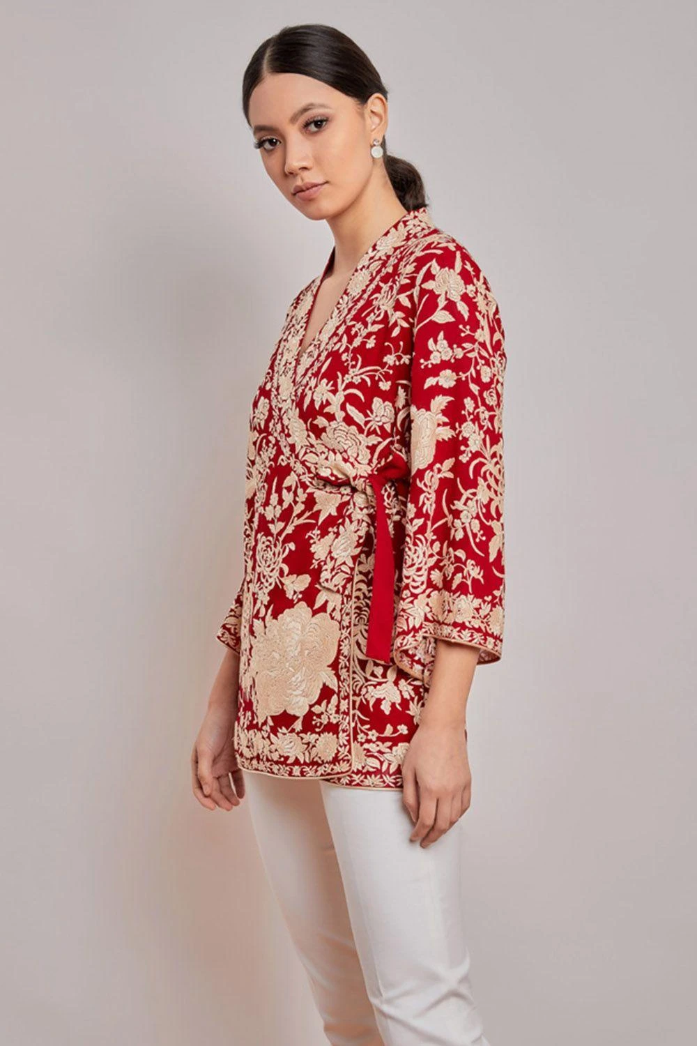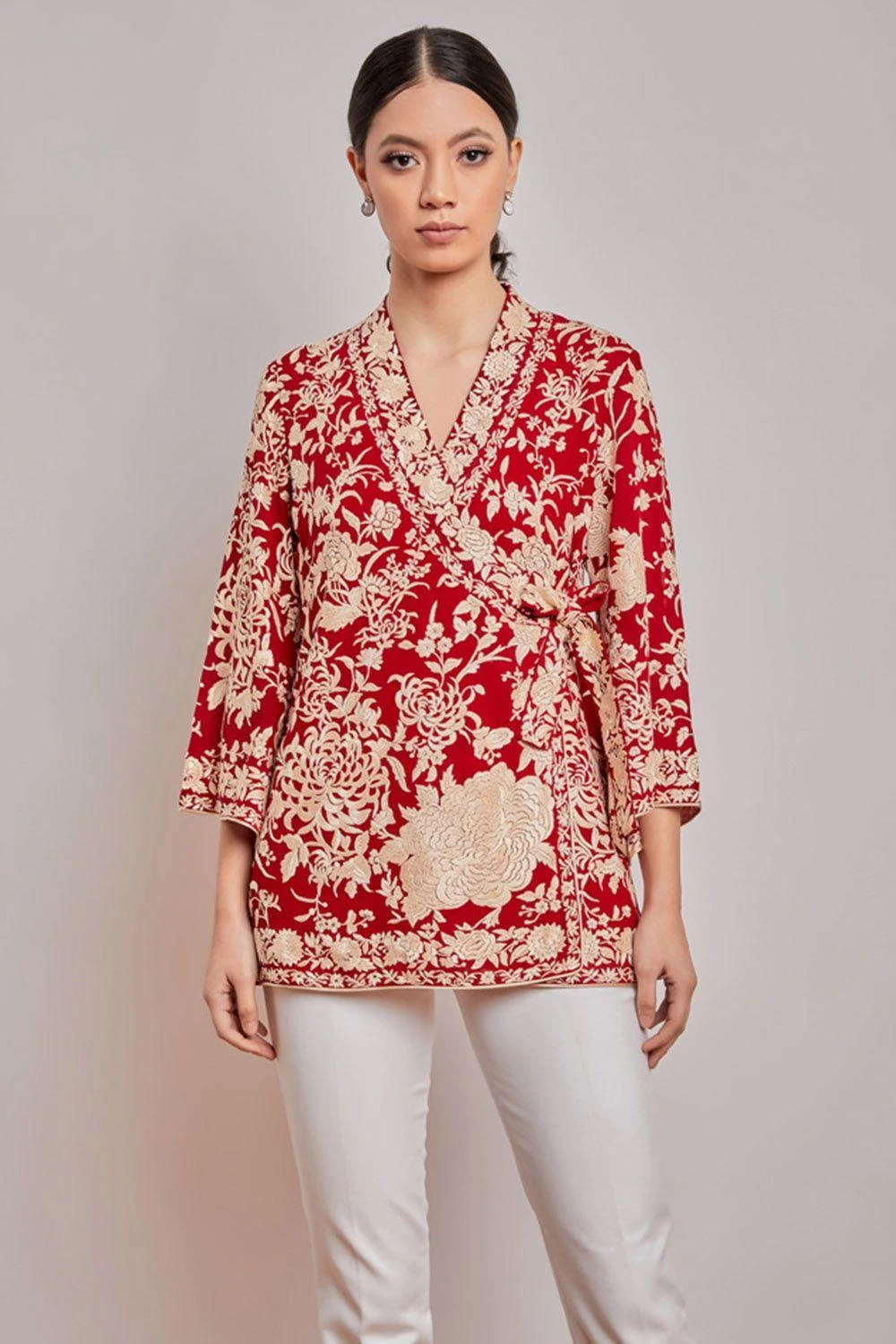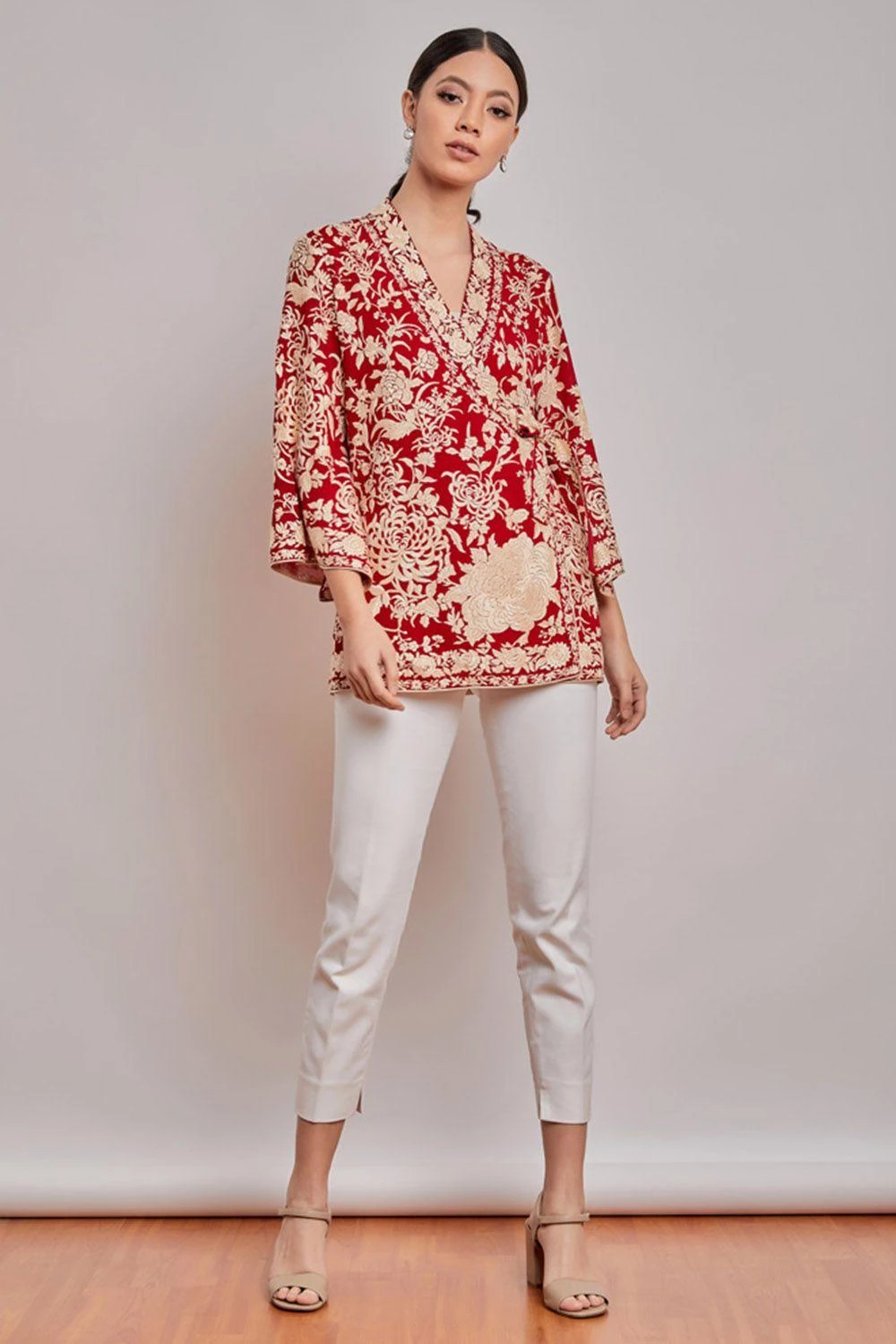 PATINE Red Parsi Gara Embroidered Wrap Top