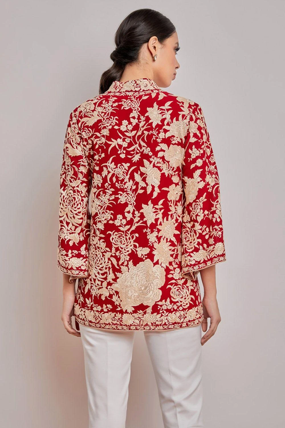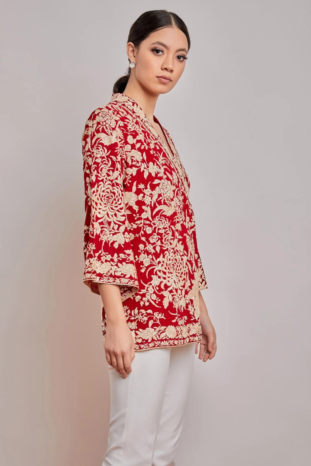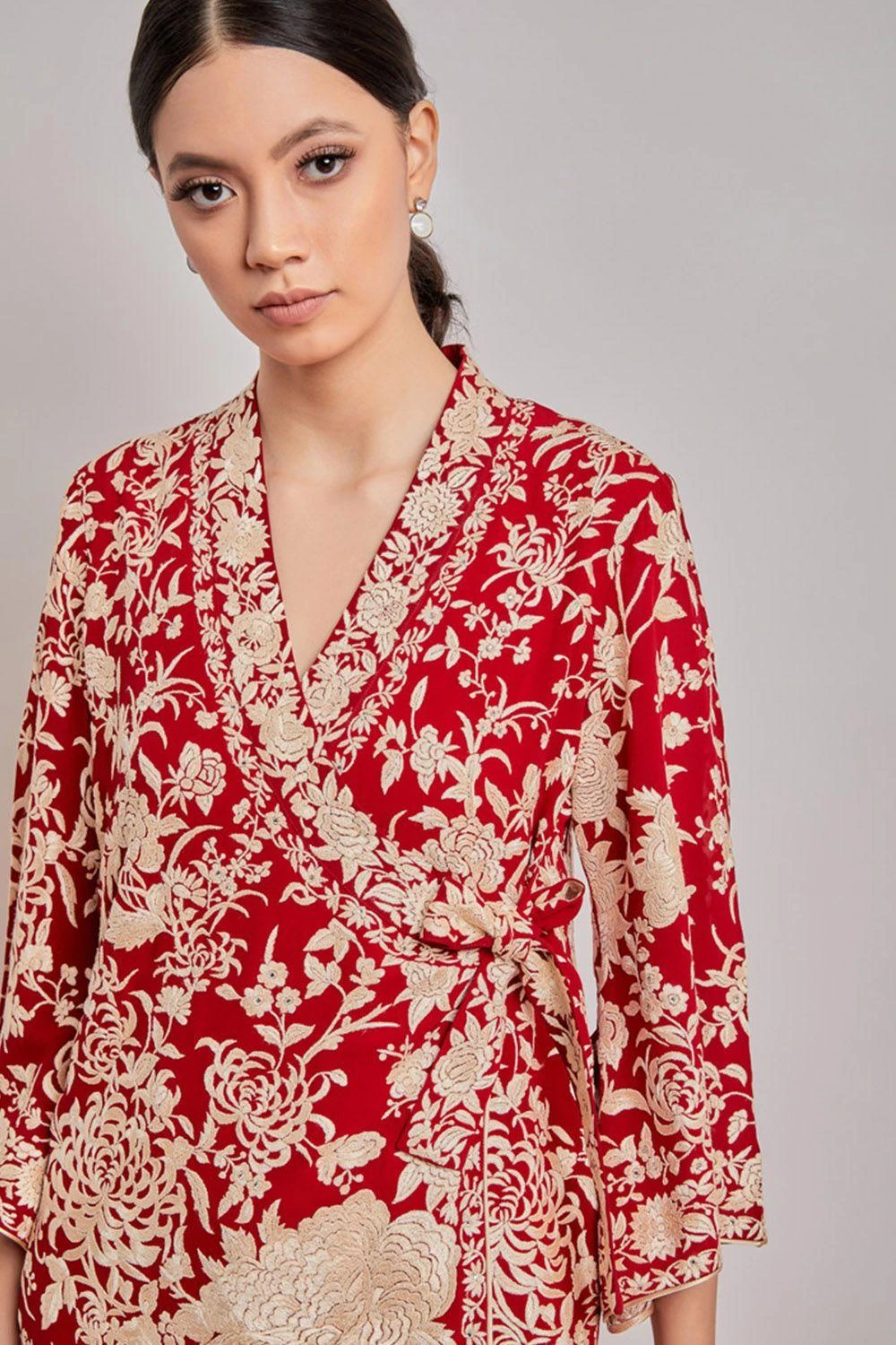 PATINE Red Parsi Gara Embroidered Wrap Top