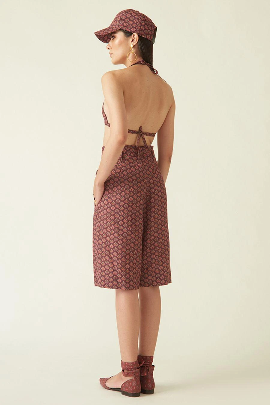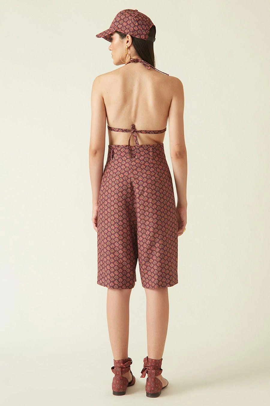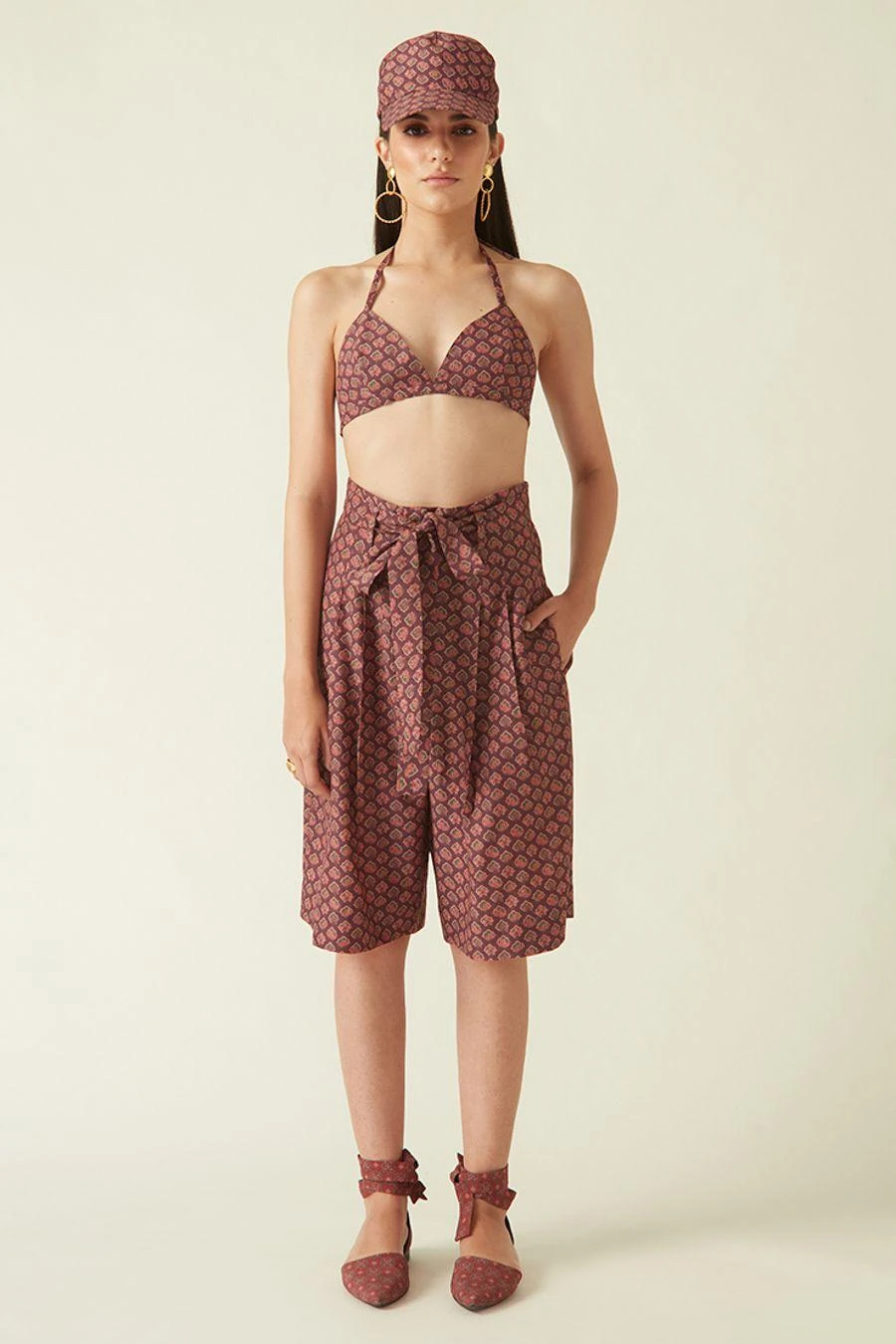 Crafted in cupro monga silk, these pleated shorts features an abstract print with side pockets with a fabric belt to tie at the waist. Pair it with a printed top from the collection to complete the set.