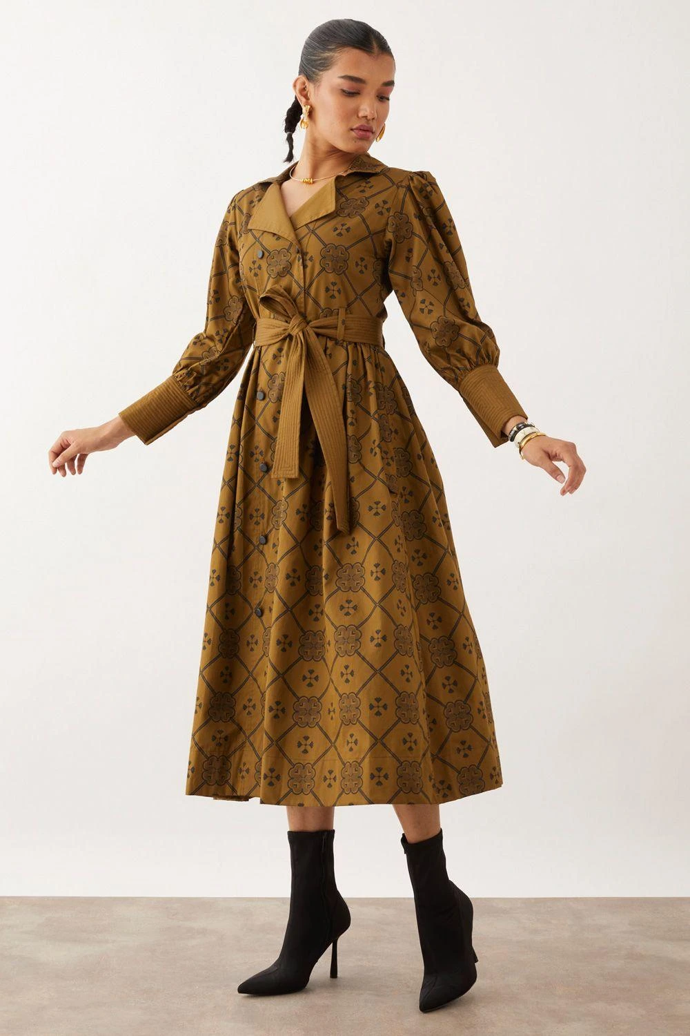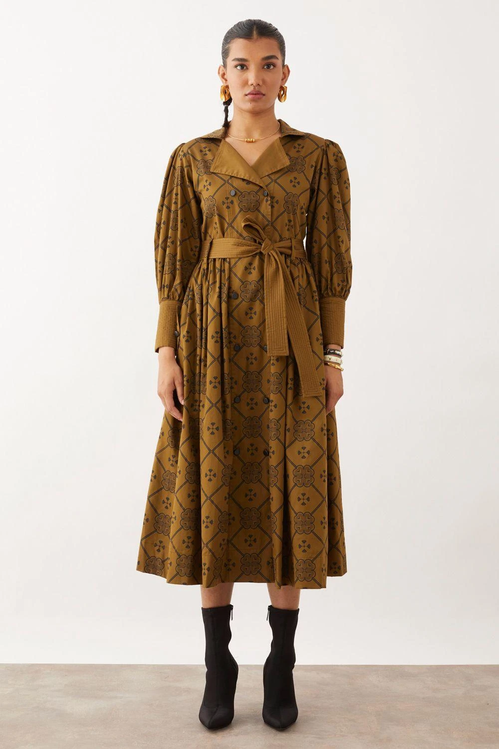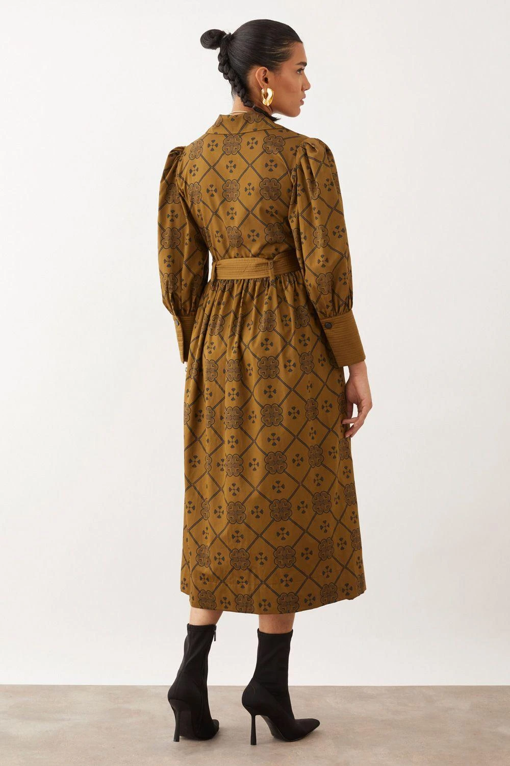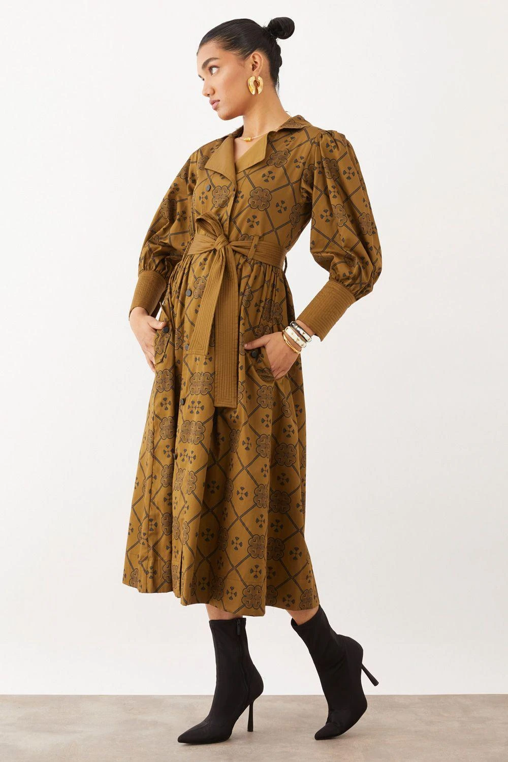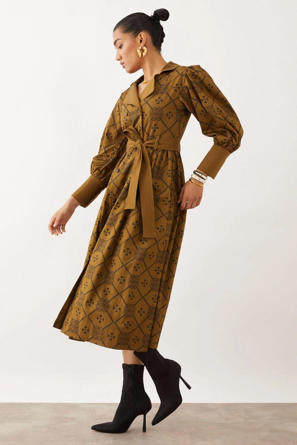 Make a chic statement with this clover print trench dress. Its trench-style design is elevated by the elegant quilted cuff detail, creating an exquisite look that exudes sophistication and modern flair.