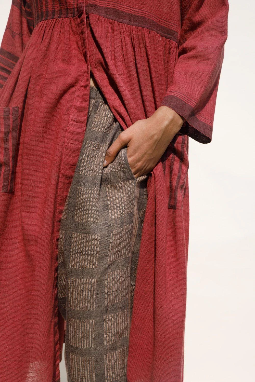Indulge in effortless style with these easy-fit check pants, crafted from hand-spun cotton. These versatile pants provide a comfortable and relaxed fit, perfect for everyday wear.