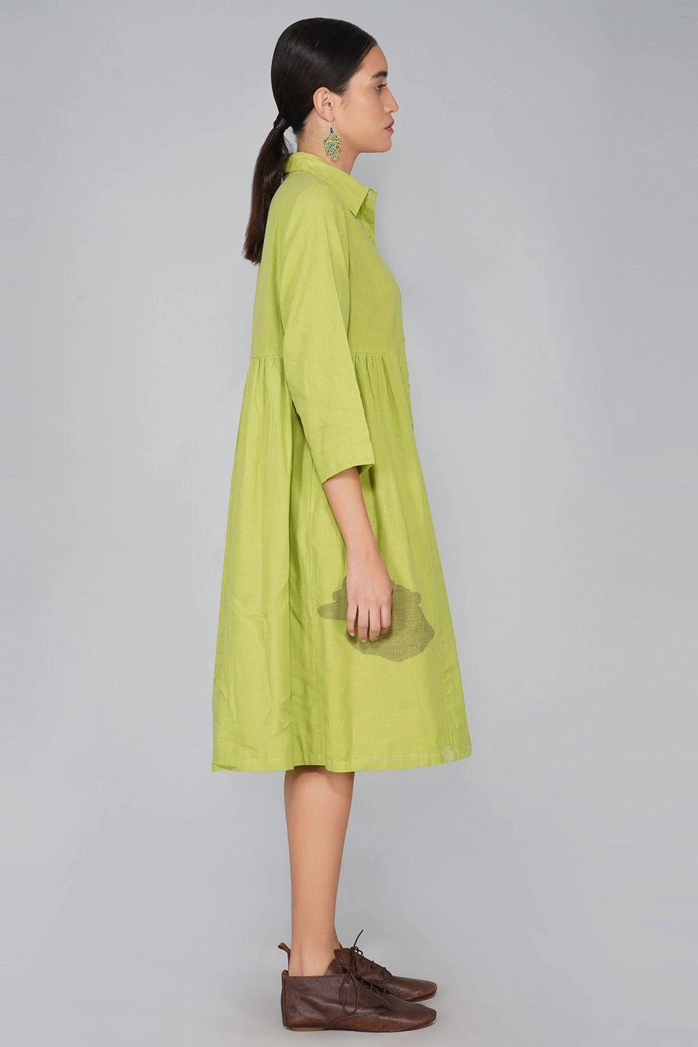 This lime green dress is made in 100% cotton. The simple & subtle silhouette will surely make it your staple wardrobe piece. Dress it up with a bucket hat and a pair of sneakers for a chic look.